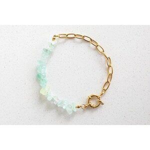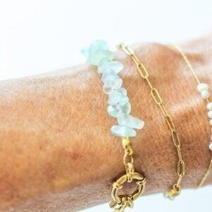 Beachy Aqua colored Fluorite Gemstone Bracelet Waterproof paperclip Chain