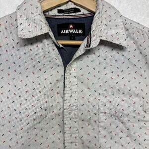 AIRWALK Men's Short Sleeve Button Down Shirt Sz L White w/Blue & Red Anchor
