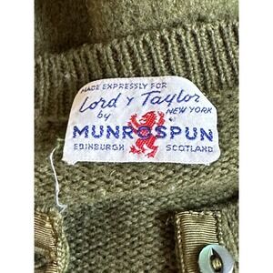 Item is in good vintage condition. There is one small hole on the back and some pilling relative to age. See pics. Made in Scotland with 100% pure virgin wool.