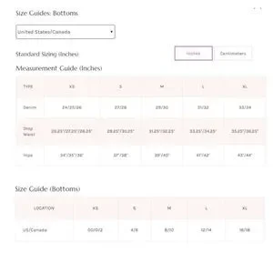 Measurements for size Small: