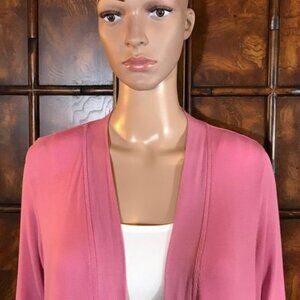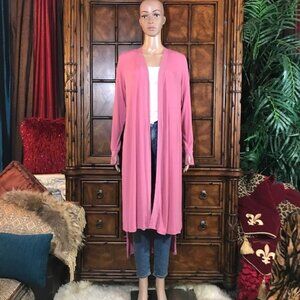 NWOT Cuddl Duds Pink Ribbed Knit High Slit Open Front Duster Cardigan