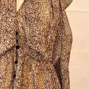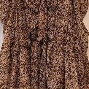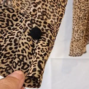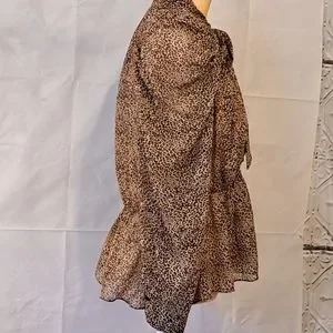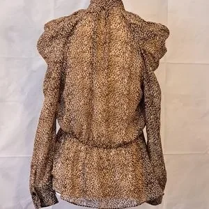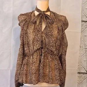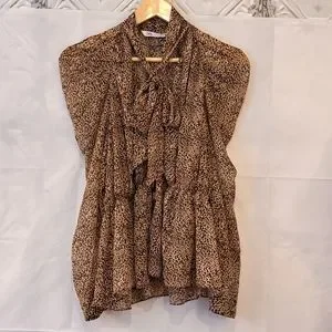 ZARA LEOPARD PRINT PUSSYCAT BOW TIE 90'S STYLE BLOUSE IN BLACK/BROWN SZ M