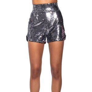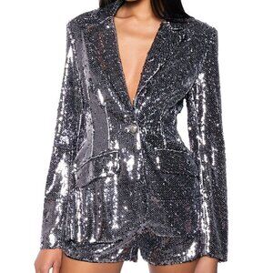 Callie Holiday Sequin Fitted Suit Blazer & Shorts In Hematite Small