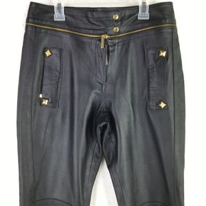 Lilly Sarti Lambskin Leather Moto Pants Size 40 Black Gold Designer Brazil