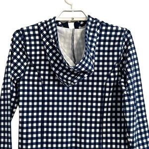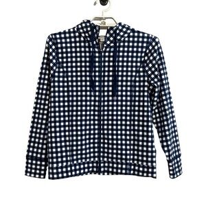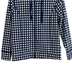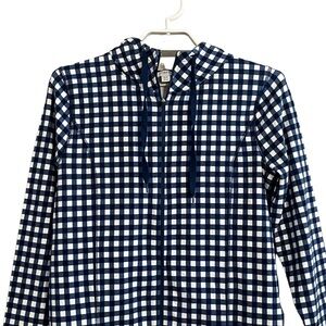 Women’s J. Crew blue and white gingham full zip active hoodie Sz XS Excellent condition no flaws