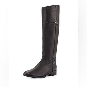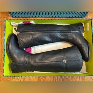 Brand NEW in Box (with dust bag) Tory Burch “Jolie” Riding Boots: Black Pebbled (100%) Leather, Size 8.5 *Wide Calf,* with silver hardware. Never worn and gorgeous!