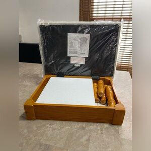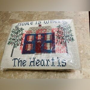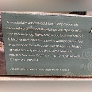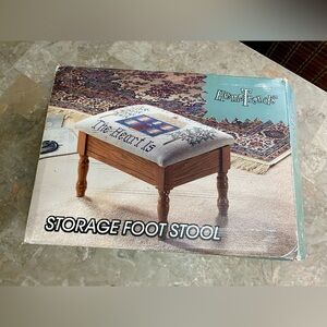 NEW Antique Wood Storage Ottoman Foot Stool Tapestry Top “Home is Where the Heart is”. New in Original Packaging. The box is a bit damaged but the item is in perfect condition.