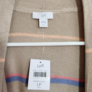 j.jill linen blend pastel striped long cardigan sz lg petite nwt lightweight