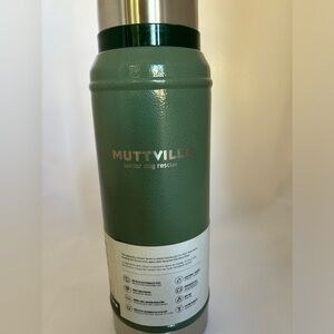 Stanley thermos: 24hrs hot, 26hr cold, 5days iced. Double walled steel lid doubles as a cup. Etched with “Muttville”. Dishwasher safe!