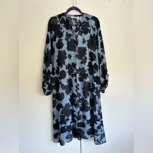 Dusty Blue Long shirt dress with loose fit. Button puff sleeves and mandarin collar.Detachable slip dress lining.