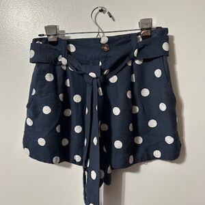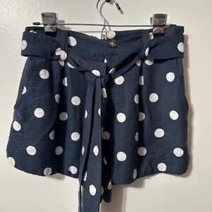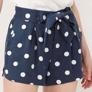LC Lauren Conrad Blue White Polka Dot Tie Waist Twill Sash Shorts Size Small