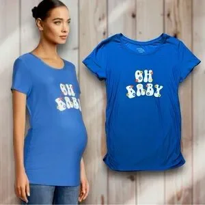 In like new condition. Time & Tru Blue Oh Baby 70s Floral Soft Maternity Shirt. This shirt is amazingly soft and comfortable and grows with your belly.