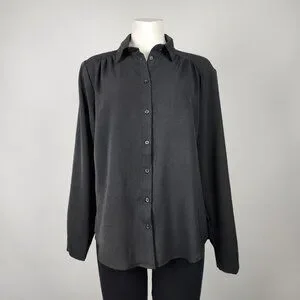 Have Black Pleated Button Up Long Sleeves Top Size L
