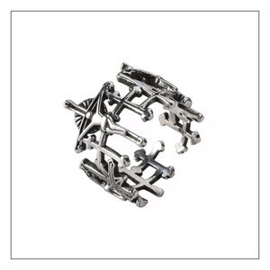 SILVER Adjustable Crucifixion Jesus Brutalist Style Ring