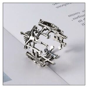 Silver Tone Adjustable Crucifixion Jesus Brutalist Style RingUnique Crucifixion Ring Done In The Brutalist Style. Adjustable To Most Fingers. Beautifully Done With An Edginess To It.