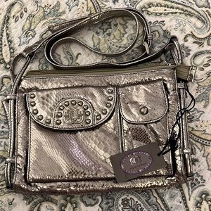 Sharif Original by Sharif Pewter Metallic Leather Crossbody Purse