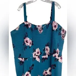 Details: Beautiful stretchy comfortable EUC jumpsuit from Lane Bryant! Beautiful blue color with light pink flowers throughout, smocked top, adjustable straps, wide leg. This would be perfect for a wedding guest outfit, cruise outfit, or a beach day!