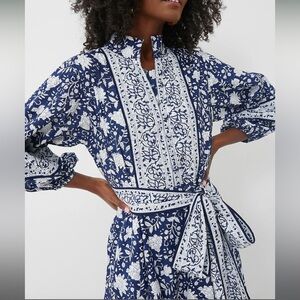 In a colorway exclusive to Tuckernuck, the Navy Flounce Dress features beautiful blue block-printed florals. One of the brand's signature styles, this midi was based on a concept for a comfy caftan that allows ease of movement and creates a relaxed yet put-together look. The details are endless here — a Nehru stand collar, covered buttons at the placket, and a self-tie waist sash are just a few that we are loving. This closet-favorite is a magnificent wear-everywhere style, so pair with wedges and a clutch for dinner, or with boots and sunnies to meet your girls for happy hour.