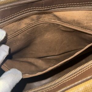 Look at the pictures. Bag is vintage and has wear on the corners and inside. Please see pictures