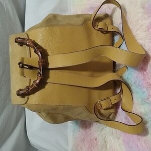 Auth Gucci Yellow Suede Leather Bamboo Handle Vintage Backpack Unisex