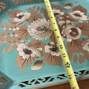 In great vintage condition 1959 hand painted mint green and gold tray . Please check all photos for condition and size