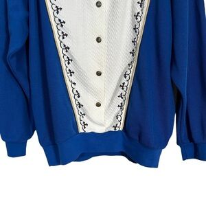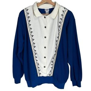 Vintage Koret 80s 90s Cottagecore Embroidered Blue and white collared sweater