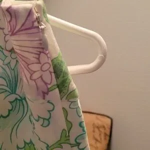 gorgeous new skirt with side zipper fully~ lined with cream satiny nylon fabric~ gorgeous purple, seafoam green and mauve floral design ~new, never worn~ mint condition~ fabric label not present but I am a seamstress and the fabric appears to be a beautiful linen type rayon🌿 gorgeous feel to the fabric~waist down to hem 21- 1/2 in~waist 28in.