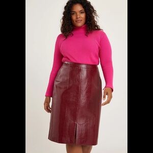 From Anthropologie: "In a contemporary silhouette, this faux leather skirt puts an edgy twist on tucked-in buttondowns, slouchy knits, and graphic tees alike."
