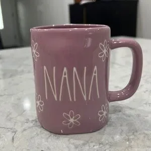 Brand new Rae Dunn ceramic NANA mug with flower print all around. This adorable mug is a glossy purple ceramic. It's a perfect gift for mother's day or any occassion.
