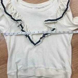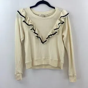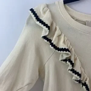 Cream Ruffle Trim Long Sleeve Sweater Top Dress up or down Size S 100% Cotton