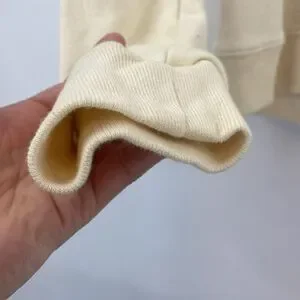 Stylish cream sweater with ruffle trim. Perfect for casual wear. 100% cotton