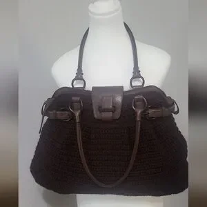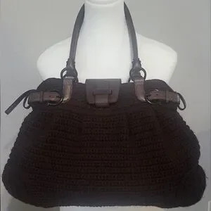 in excellent condition 😍 inside and out summer bag by salvatore Ferragamo crochet chocolate brown purse make reasonable offer