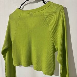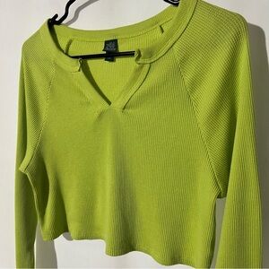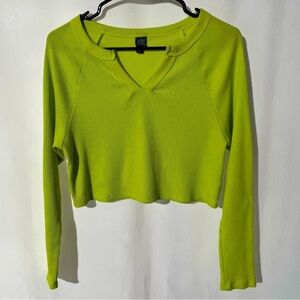 Wild Fable Long Sleeve V-Neck Crop Waffle Knit Lime Green Shirt Women’s Size XS