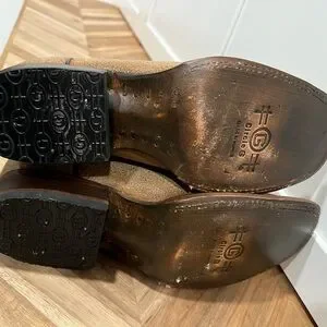 Laser cut, beautiful leather boots. The color will go with anything. Never worn. These boots are wide enough to fit a plus size lady. I cannot find the box. Hand made! 15” around the calf.