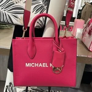MICHAEL KORS Mirella Small Pebbled Leather Crossbody Bag Tote Electric Pink NWT