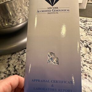 This is a custom made princess cut diamond engagement ring. The center stone is 3.14 carats with 50 small diamonds totaling 0.5 carats set into a custom made 18 KT White gold setting. No other ring like it, we designed it. This is a lab grown Diamond which is a REAL Diamond. There is nothing physically, chemically, or visually different between LGD and earth mined diamonds. Please do not send low ball offers. The market value for my ring and diamonds right now is $12,800. I have an appraisal and it is a IGI certified diamond that is laser inscribed and verifiable.