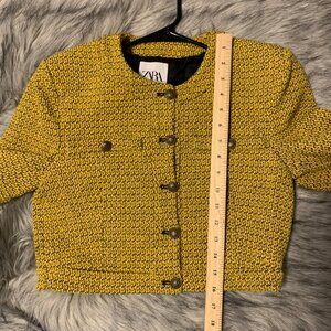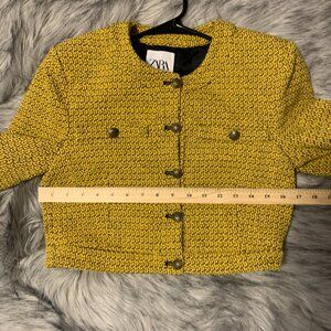 ZARA Women Tweed Blazer 2674/712, Yellow, Size S