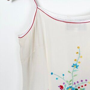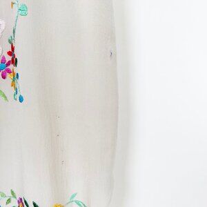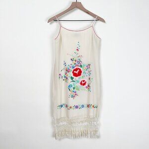 100% Silk Vintage Handmade Embroidered Floral Fringe Tassel Mini Midi Sun Dress
