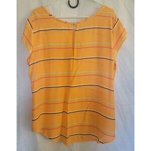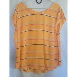 Stylus Women's Short Sleeve Striped Blouse Top Tangerine/Light Orange Size XL