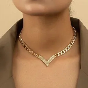 Rhinestone Chunky Chain Necklace, Charm Pendant Trendy dainty Minimalist