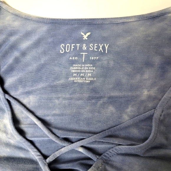 American Eagle Soft & Sexy Blue Wrap Top Criss Cross Tie Dye Medium.