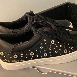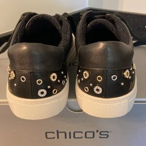 NIB NWT Chico’s Black w/ Gold & Silver Metallic Rivets, Beads, Pave ILIMA Embellished Sneakers