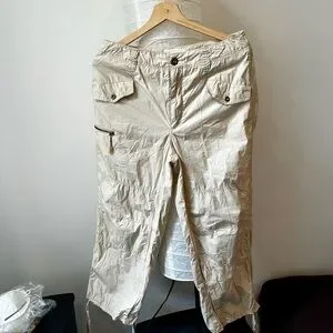 ANTHROPOLOGIE COTTON CROP HIKING PANTS TAN LIGHT WEIGHT CARGO SZ 29 NWOT