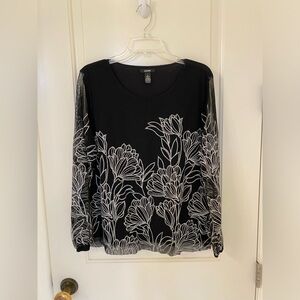 Size L silver embroidered black top from Alfani