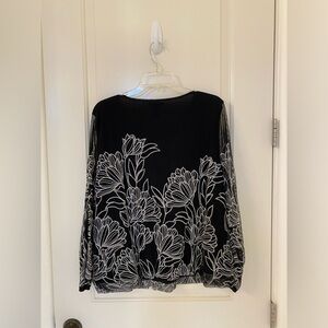 Mesh top with solid black lining. Long sleeves. Lightweight. Flattering. Superb condition