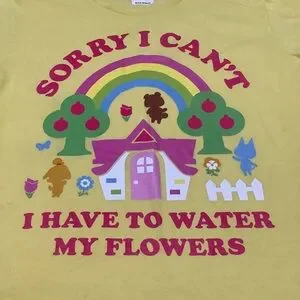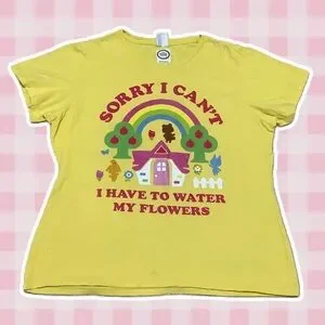 Nintendo Port and Company Brand Kawaii Kawaiicore Cozy Gamer Aesthetic Yellow Multicolored Shimmer Graphic Sorry I Can’t I Have to Water My Flowers T Shirt. Good condition-some wear, marks, pilling. Size XXL.