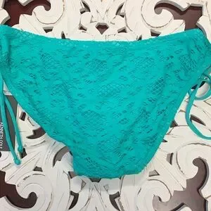 Kenneth Cole Reaction Crochet Detail SGL Aqua Green Bikini Bottoms Size M NWT