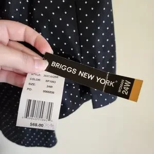Womens Briggs NY black with polka dots. One button closure. Also has pockets. Size 24W. NWT.