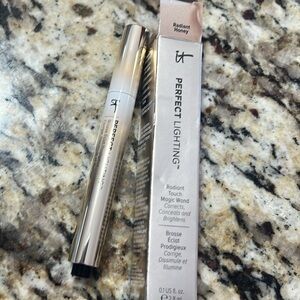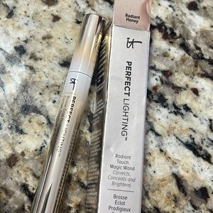 This is the very rare & discontinued shade radiant honey from the it cosmetics perfect lighting radiant touch magic wand collection. Developed with plastic surgeons, perfect lighting instantly corrects, conceals, and brightens the look of your skin in just one touch. This innovative concealer and correcting brightened utilizes drops of light technology and pearl to add subtle radiance without glitter or shimmer, and brings your best features forward while neutralizing, correcting and blurring the appearance of skin imperfections. Brand new in box, full size & authentic.