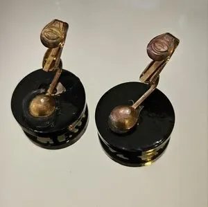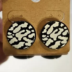 These vintage black and white patterned flat circle clip-on earrings are in excellent vintage condition, with new silicone cushions on the clips. You can't go wrong with these classic colors! They are a must-have in any wardrobe.